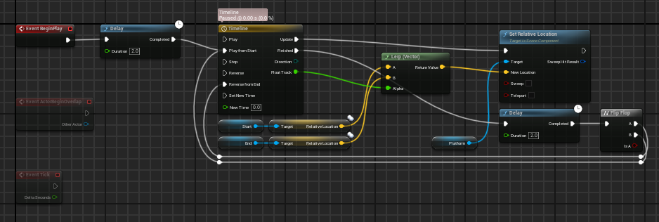 - 2. The platform moves from each static mesh after 2-second intervals