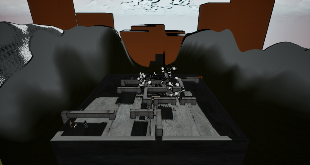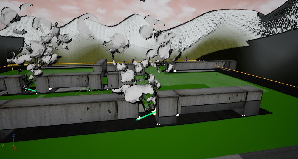 - This one was kind of funny. I struggled to find a way to use the smoke for the game until I was reminded of the small gaps between the vents that the player could fit in, but not the zombies, since the navmesh refused to be drawn there. I thought maybe I could keep it that way and place the smoke in those spots to make it feel like a safe hiding spot. I also made it come out the vents so it makes a bit more sense to why they're there.